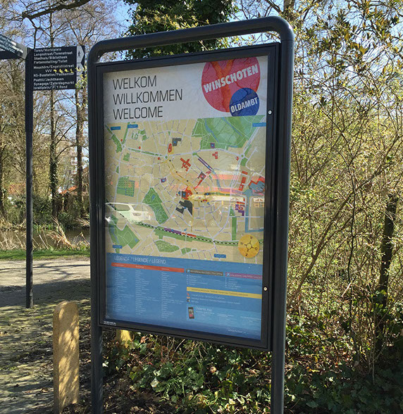 Een informerend bord, frame of zuil op uw terrein helpt klanten u te vinden. Het ontwerp mag niet afleiden van dat doel, maar ook niet uit de toon vallen. Simpele schoonheid, daar gaan we voor. Kijk maar eens naar de voorbeelden.
